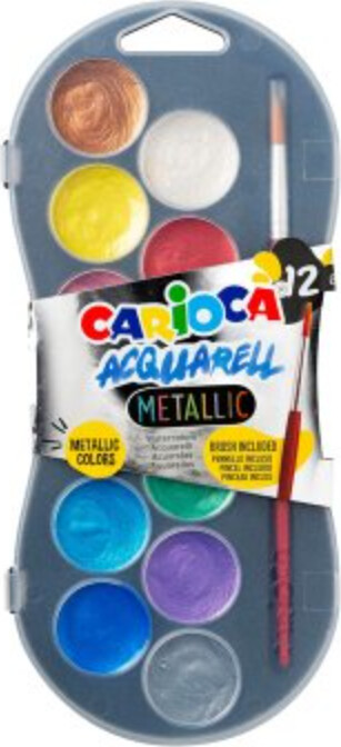 Carioca - Acquarell Vandfarve Sæt Med Pensel - Metallisk - 12 Farver