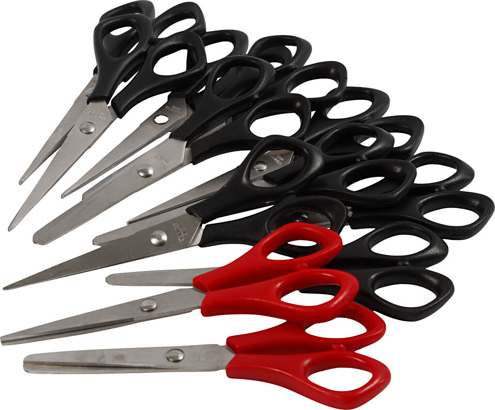 Skolesaks - L 14 Cm - Højre- Og Venstre - Sort - Rød - 12 Stk.