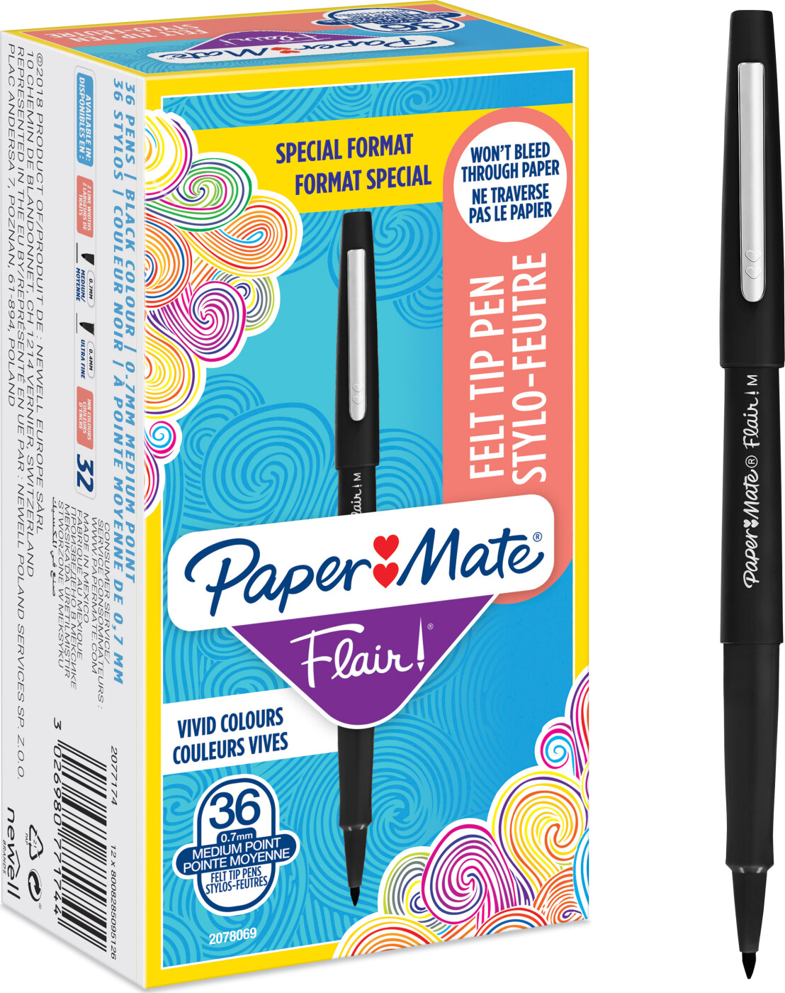 Paper Mate - Flair Filtspids Penne - Sort - 36 Stk