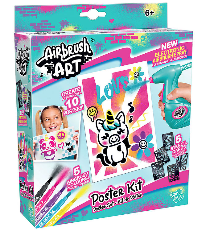 Giv din kreativitet frit spil med Airbrush Plush Art - Plakatsæt og lad dine kunstneriske evner skinne igennem. Perfekt som gave til kunstelskere eller som en sjov aktivitet til dig selv!