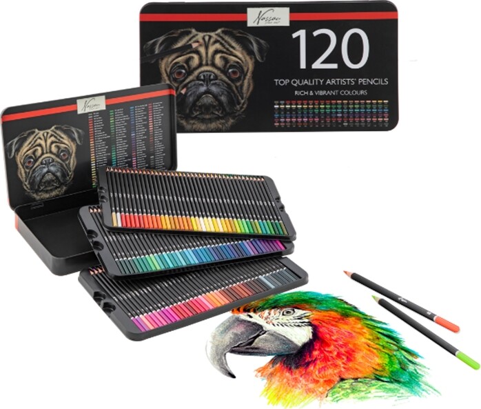 Introducer dig selv til en verden af farver med Farveblyanter I Metalæske - Nassau - 120 Stk. Denne omfattende samling af farveblyanter er ideel til kunstnere på alle niveauer, børn samt voksne, der elsker at male og tegne.
