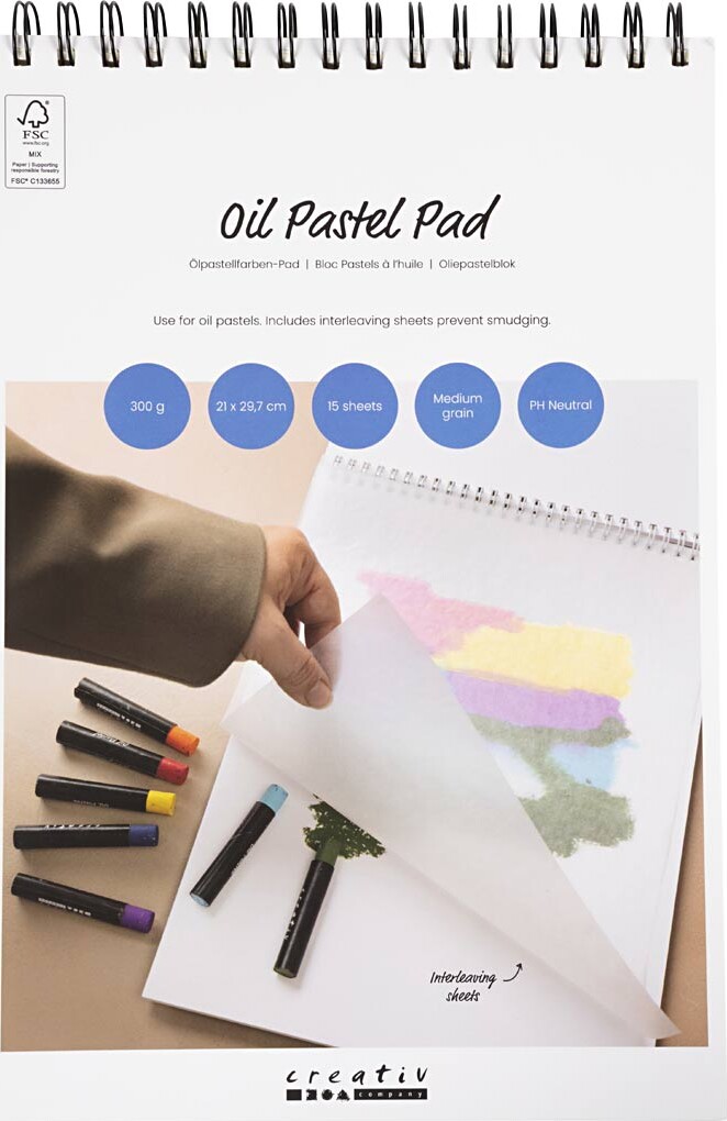 Oliepastelblok A4 er det perfekte valg for kunstnere og kreative sjæle, der søger et kvalitetsprodukt til deres oliepastel-teknikker. Denne blok indeholder 15 ark, hver måler 210x297 mm, og er lavet af 300 g papir, der sikrer en robust og holdbar overflade til alle dine kreative projekter.