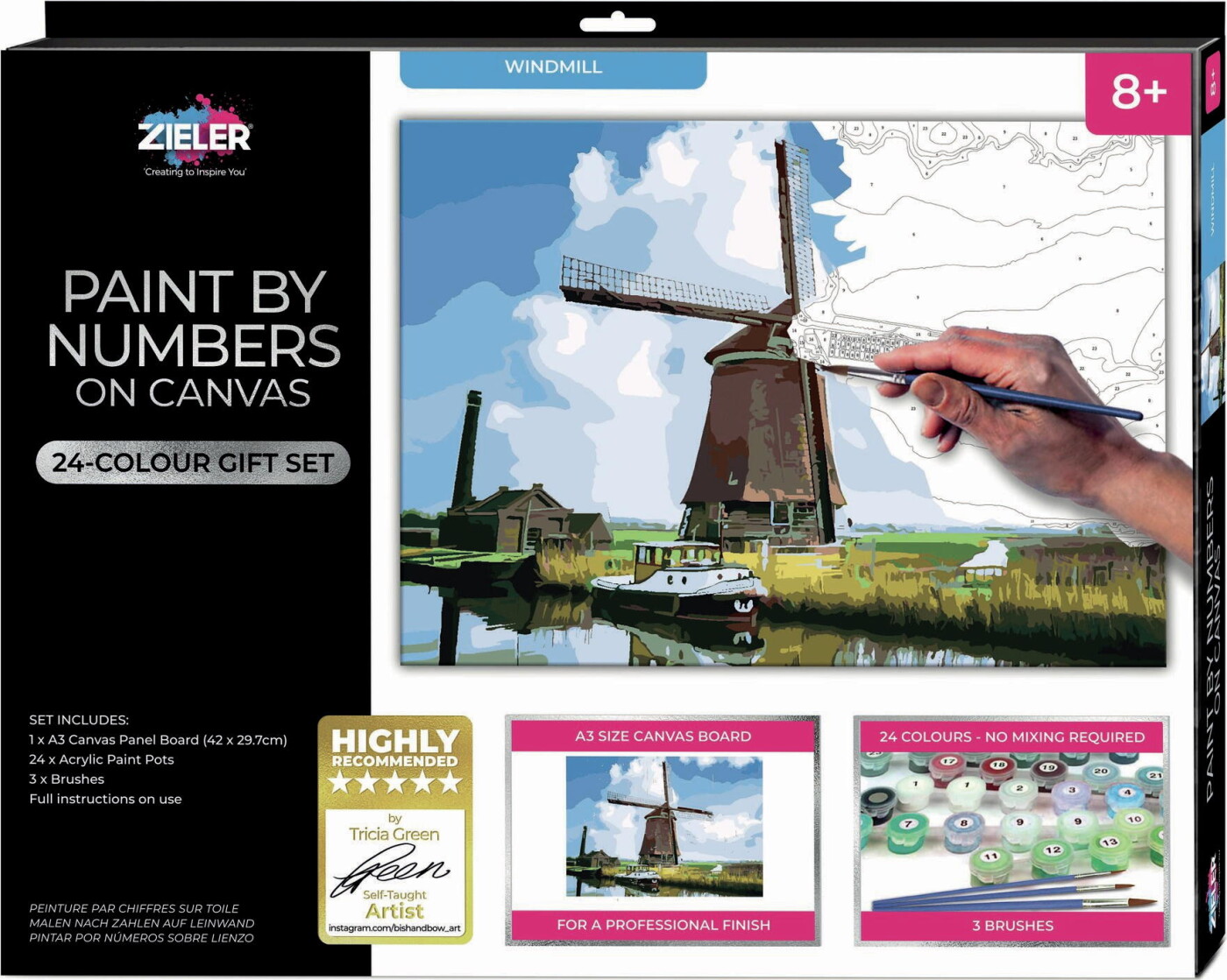 Mal Efter Tal - Voksne Og Børn - Vindmølle - Lærred - Zieler