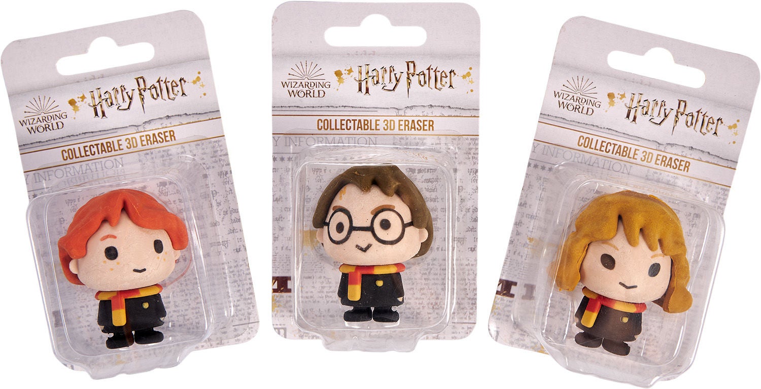 Et viskelędersęt med Harry Potter-tema. Sęttet indeholder tre viskelędre, der forestiller Harry, Ron og Hermione.