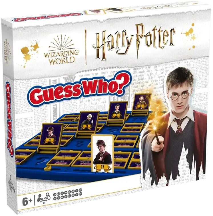 Guess Who spil fra Harry Potter med 24 karakterer fra Harry Potters verden. Dette er en fortolkning af det klassiske spil, hvor du skal gætte, hvilke skjulte din modstander har foran sig. Det gør du ved at stille spørgsmål om figurerne, indtil du er sikker på, at du kan gætte deres identitet. Perfekt til en sjov spilleaften. Anbefalet alder: Fra 5 år.