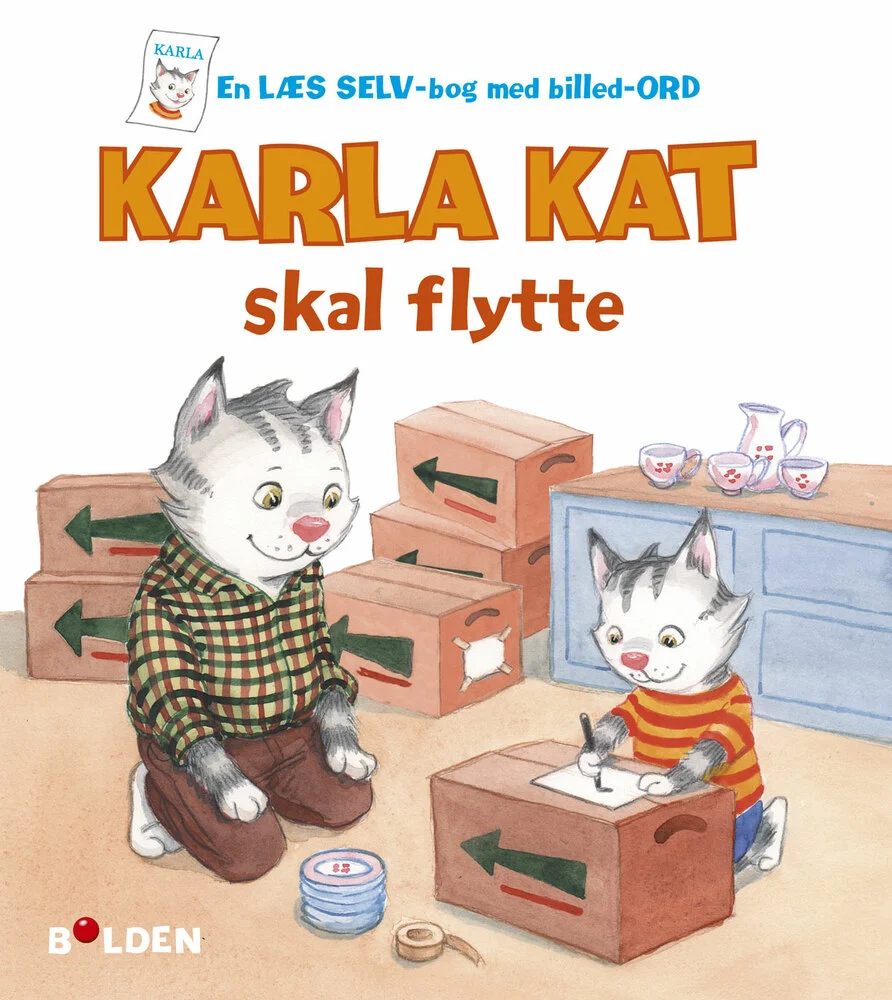 Karla Kat skal flytte til et nyt hus, væk fra sine gamle venner. "Det er lige på den anden side af skoven," siger far. Og så går de ellers i gang med at pakke flyttekasser ... Læs selv din første læsebog om Karla Kat. Du får hjælp af de sjove tegninger i