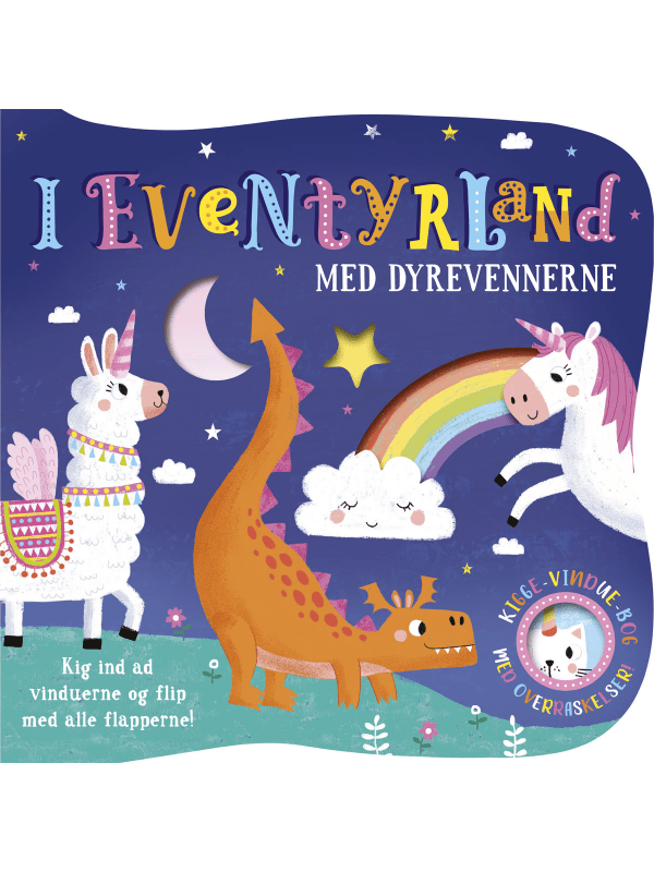 Børnebog, I Eventyrland Med Dyrevennerne Tag med dyrevennerne til det magiske Eventyrland! Kig ind ad alle bogens vinduer og flip med alle flapperne. En kigge-vindue-bog med mange spændende overraskelser! Alder 1 år+ Antal pap sider 12 ISBN 9788772054575