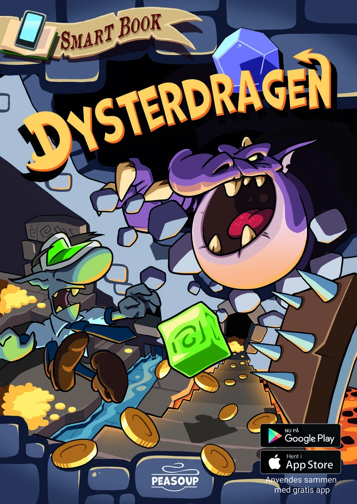 DYSTERDRAGEN - Smart Book, er en Augmented Reality læseoplevelse. I den tredje bog i Smart Book serien, er du en Sværdsvinger. Udstyret med det magiske sværd Rilgist og et skjold tager du på eventyr i Peasoup universet. Du vælger din egen vej gennem histo