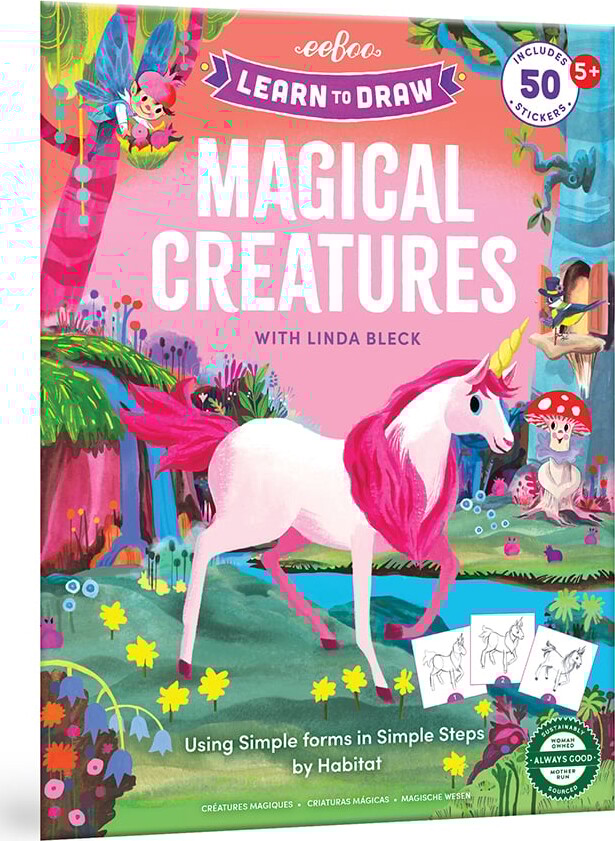 Eeboo - Learn To Draw - Lær At Tegne Bog - Magiske Skabninger - Bog