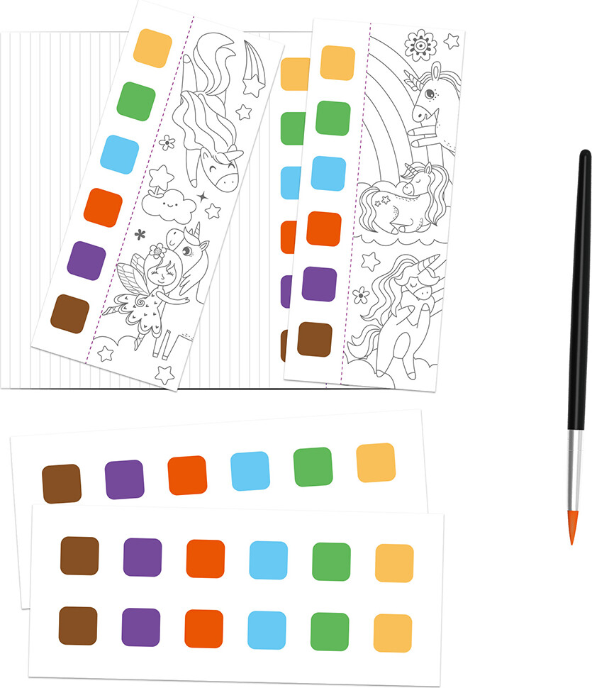 Vandfarve malehæfte med motiver fra en fantasiverden, består af en blok med 22 sider og 6 farver....
