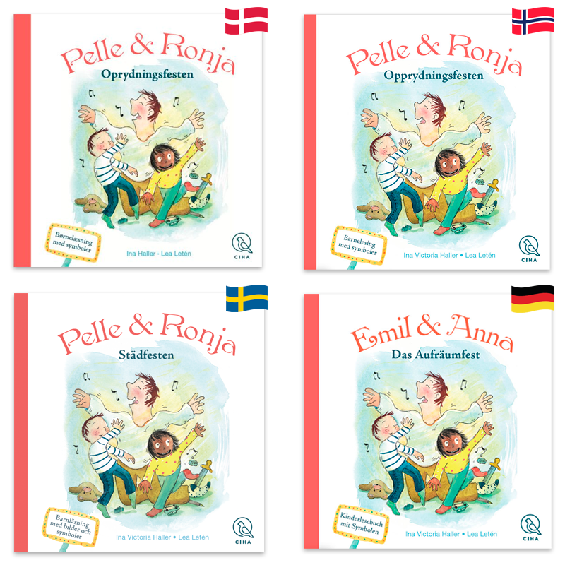 At rydde op er da bare det kedeligste i hele verden, ik? Pelle og Ronja bliver bedt om at rydde op. Det gider de ikke. Men så finder far på en oprydningsfest, hvor oprydningen er mere som en sjov leg.Undervejs i teksten er nogle ord skiftet ud med små tegninger, så dit barn kan læse med ved at sige, det der er illustreret. 22 sider