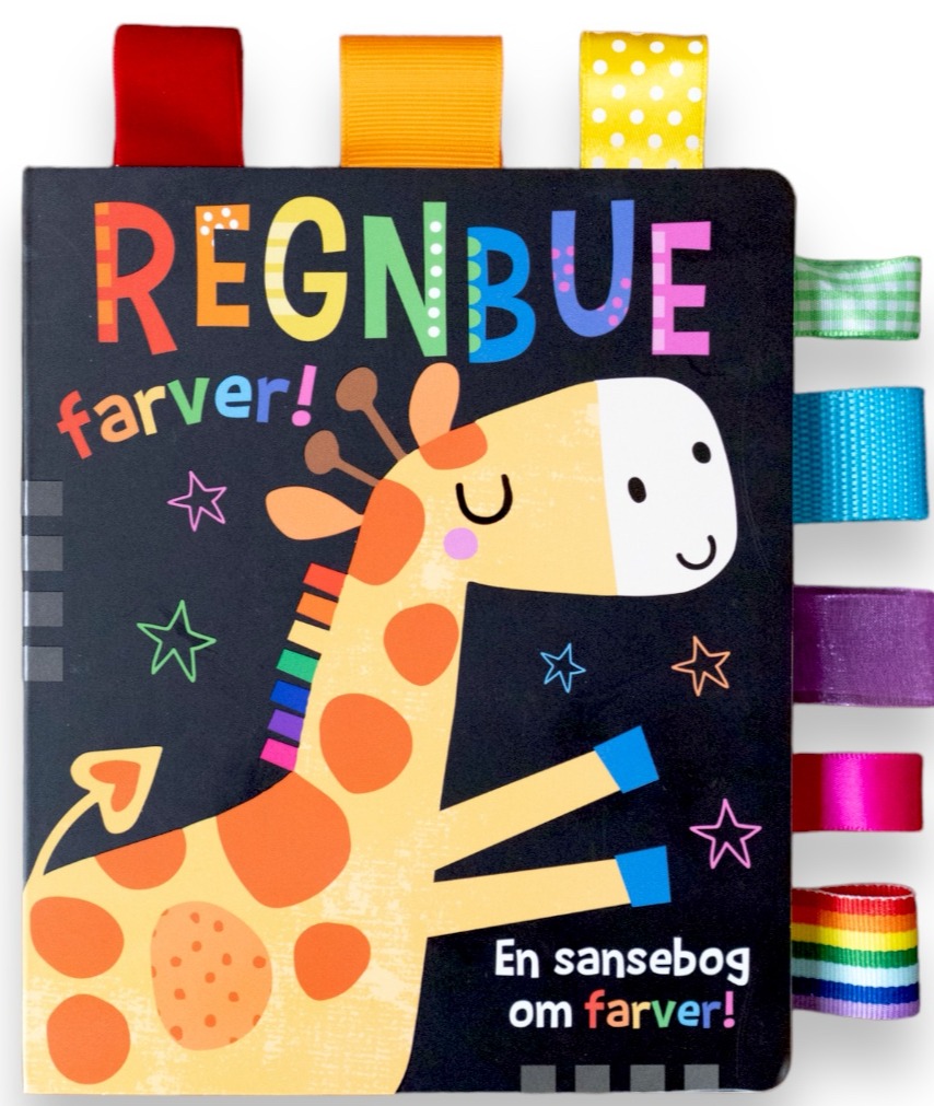 Når dit lille barn skal lære navnenes farve, er denne bog en meget fin introduktion. Bogen fortæller på charmerende vis og med søde illustrationer om alle de ting, der er orange, blå, rød osv. Der hører et rim til hver farve, og der er også en taggie (en snip stof) i siden af bogen med den farve, det handler om.Bogen har tykke papsider.