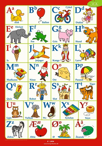 Den helt rigtige ABC-plakat at have hængende på værelset eller i klassen. Den er flot, lamineret, stor og har både tegninger, store og små bogstaver og ord, der relaterer sig til den enkelte tegning og bogstavet, som tegningen starter med. Når man ser det sådan på tryk, er det nemmere at huske.