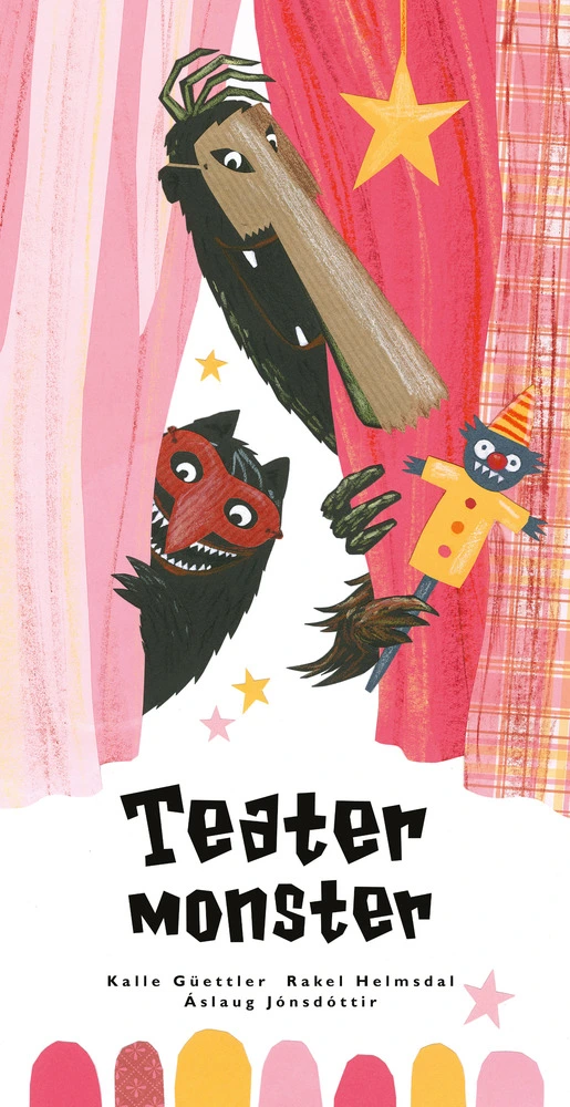 Pjuskemonster sidder alene i mørket. Store Monster og lille monster forsvandt  om bag et tæppe. Hvor er de? Hvad laver de? Det er uhyggeligt. Pludselig bliver lyset tændt, tæppet går til side og ... Hjælp!  'Teatermonster' er den tiende bog i de