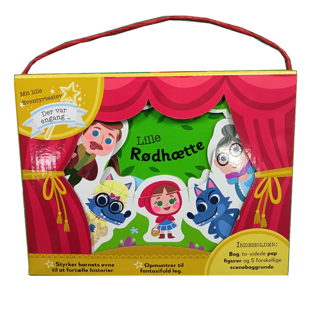 Mit eventyrteater er teater, scene, figurer bog og tilskuerrum i ét!Det giver barnet unikke muligheder at efterspille sine yndlingseventyr eller bare give fantasien frit løb og opfinde sine egne historier med de velkendte figurer. Teaterboksen stimule