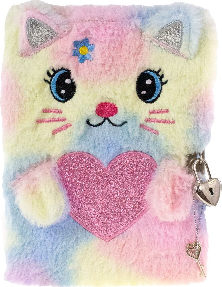 Dagbog Med Lås Til Børn - Plys Kat - Multifarvet - Bog
