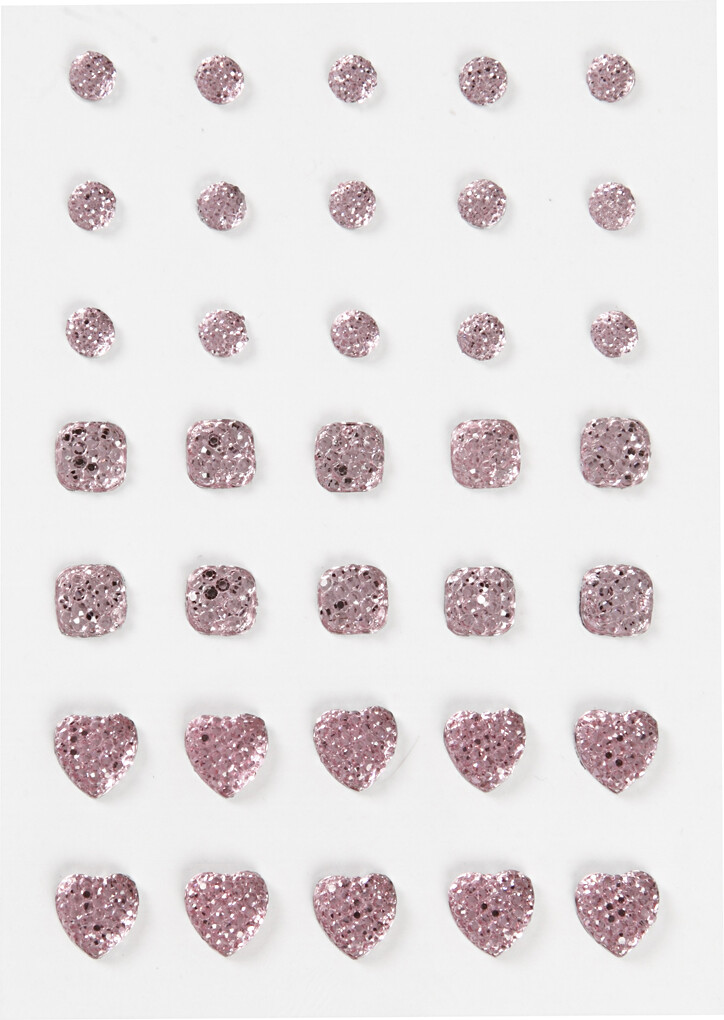 Rhinsten Klistermærker - Selvklæbende - Rund Firkant Hjerte - Rosa - 35 Stk.