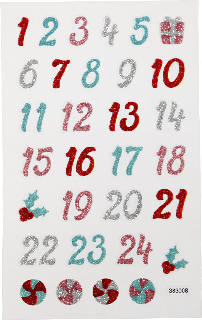 Juleklistermærker - Glimmer - 24 Kalendertal