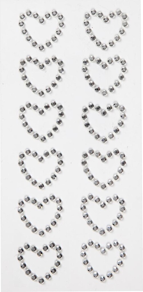 Rhinsten Klistermærker - Selvklæbende - Hjerter - Sølv - 12 Stk.