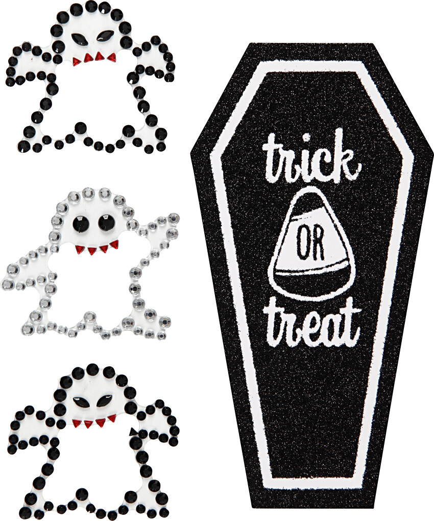 Rhinsten Klistermærker - Selvklæbende - Spøgelser Og Kiste - 14x17 Cm - 1 Ark