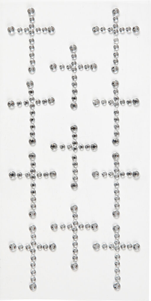 Rhinsten Klistermærker - Selvklæbende - Kors - Sølv - 11 Stk.