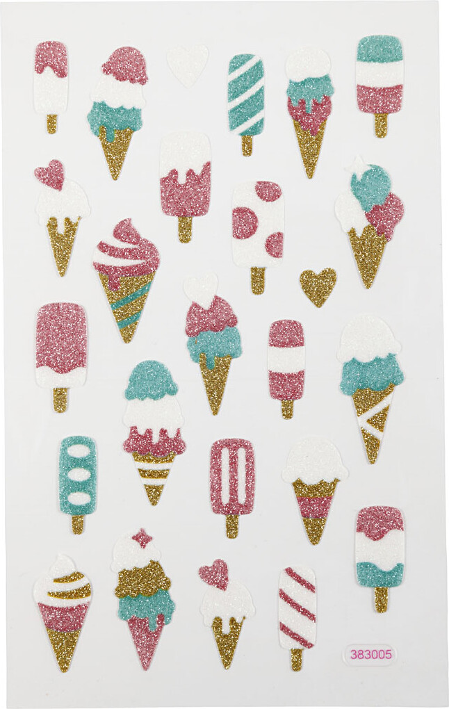Glimmer Klistermærker - Is er den perfekte tilføjelse til dit kreative arsenal. Disse klistermærker er designet med farverige og glitrende is-temaer, som vil bringe liv til dine projekter. Uanset om du laver kort, scrapbooks eller dekorerer dine personlige ejendele, vil disse klistermærker tilføje et sjovt og festligt element.