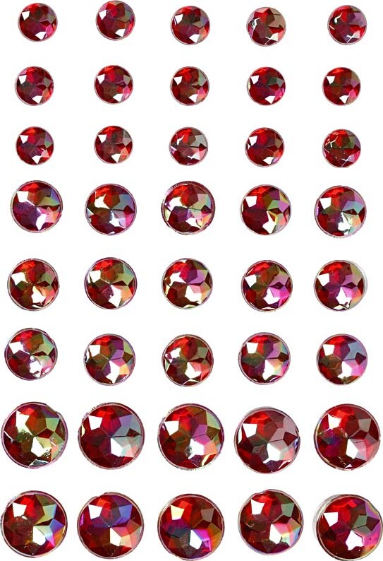 Rhinsten Klistermærker - Selvklæbende - Rød - Str. 6+8+10 Mm - 40 Stk.