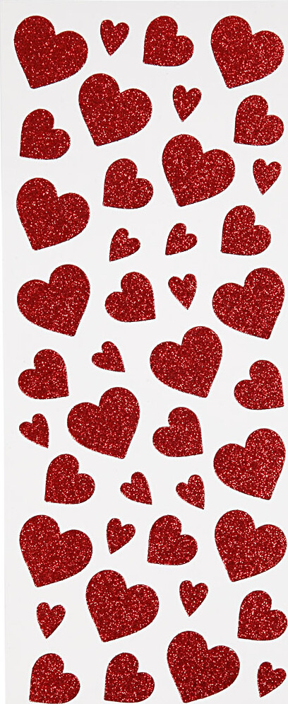 Hjerte Klistermærker - Glimmer - Rød - 2 Ark