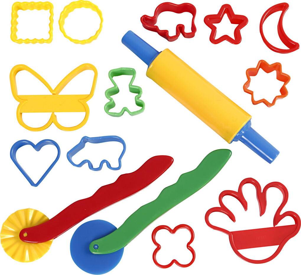 Her får du et bred sortiment, med alle de ting du eller dit barn kan få brug for, når der skal udstikkes og formes i ler, modellervoks eller lignende. Sættet indeholder 12 udstiksforme og tre...