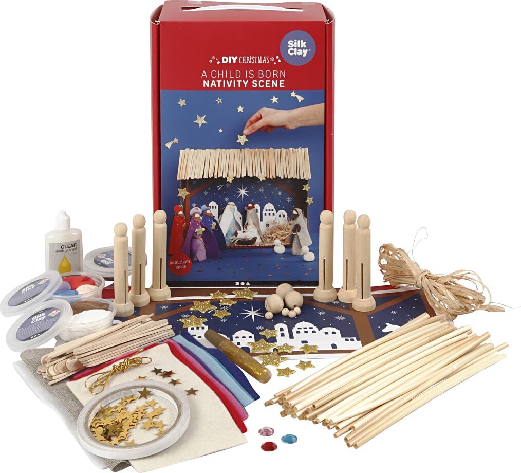 Silk Clay - Jule Diy Kit - Et Barn Er Født - Krybbespil