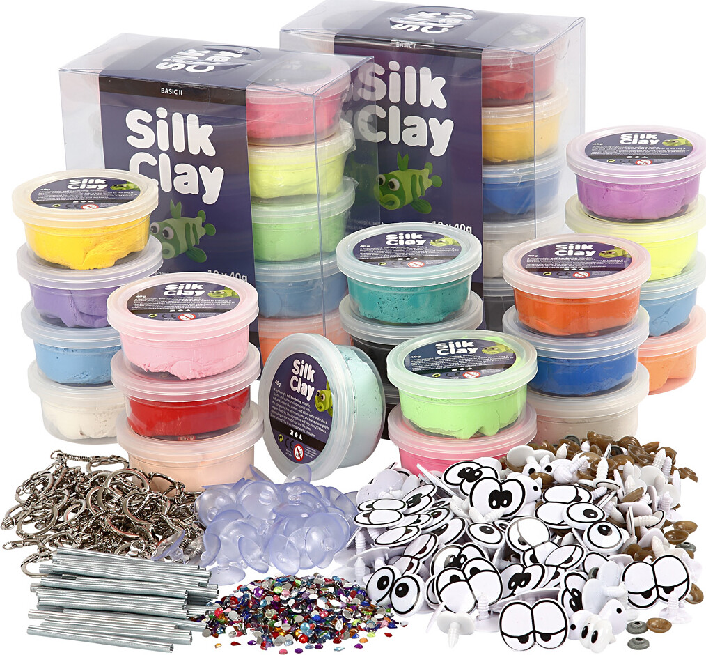 Her får du et stort materialesæt, som er fyldt med Silk Clay og forskellige stykker tilbehør til at lave sjove og kreative figurer med. I sættet får du et bred sortiment af Silk Clay i...