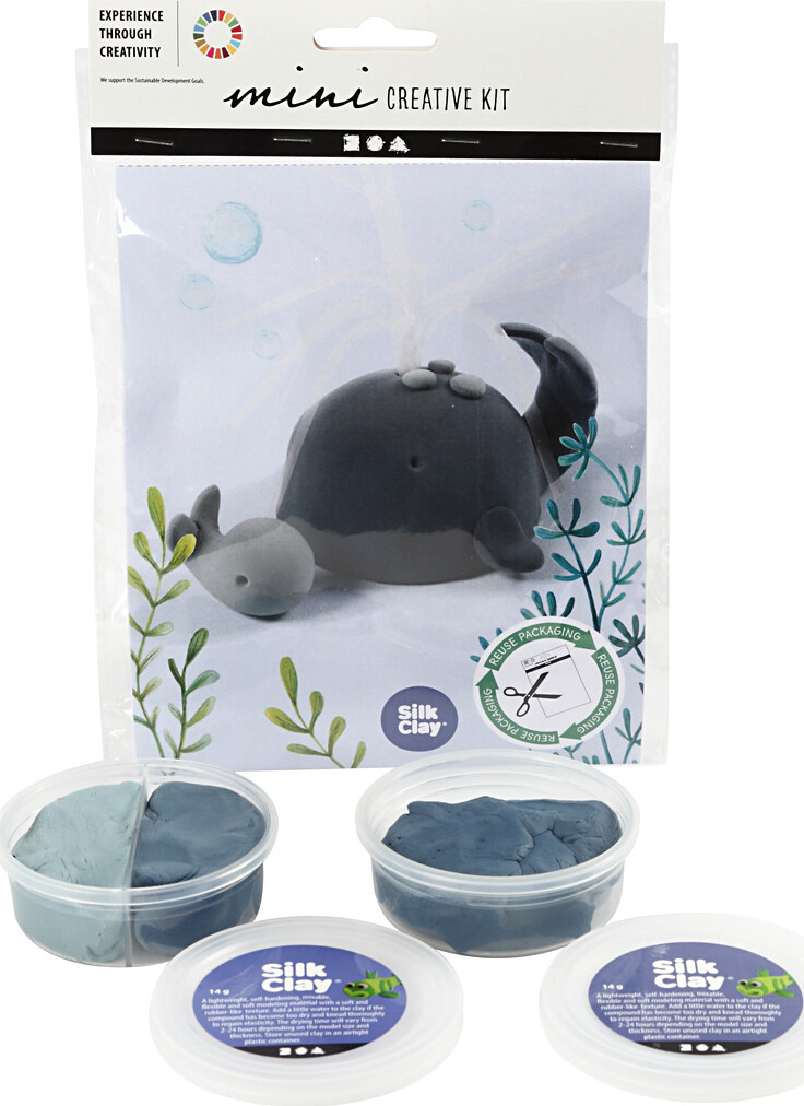 Slip din indre kreative guru løs med dette DIY Kit hvor du skal forme en sød og flot hval og hvalunge! Sættet består af 28 g Silk Clay, som er et materiale, der er selvhærdende, smidigt og blødt...
