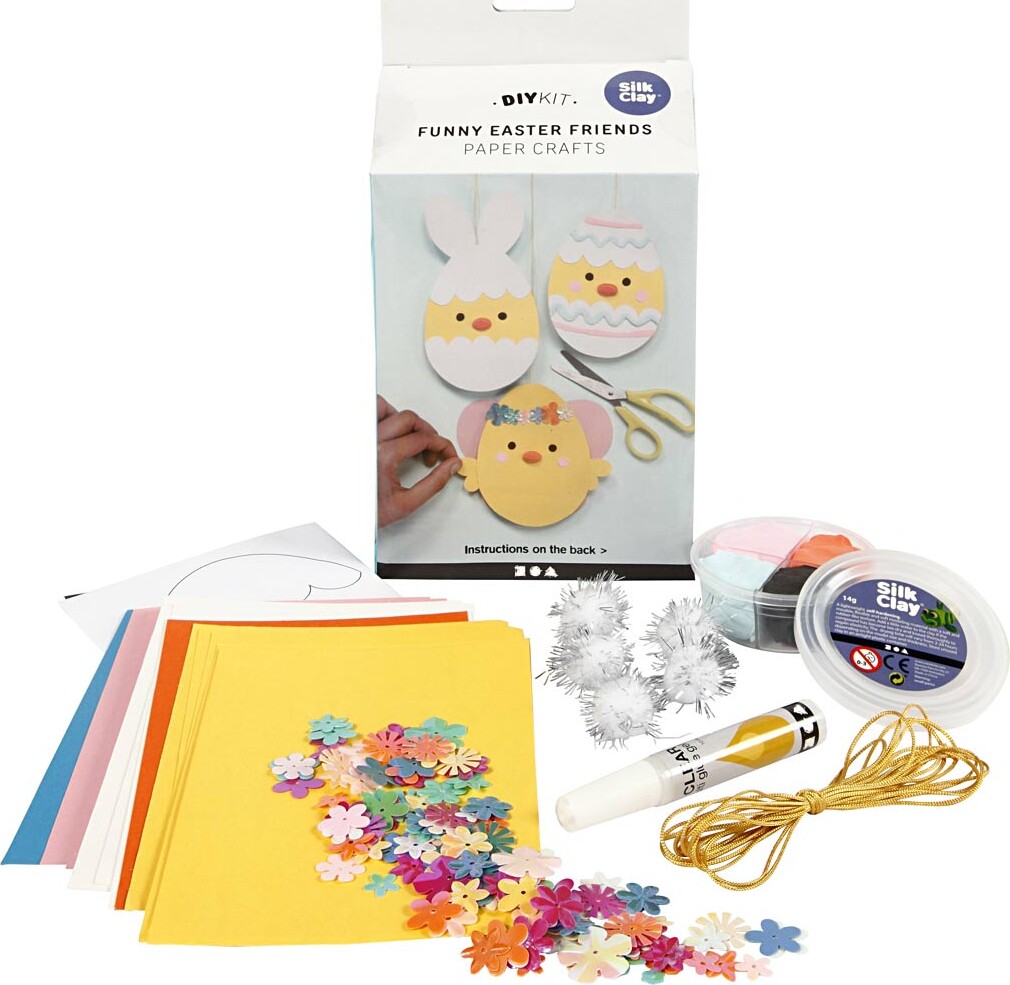 Silk Clay - Diy Kit - Sjove Påskevenner - Karton Med Pynt