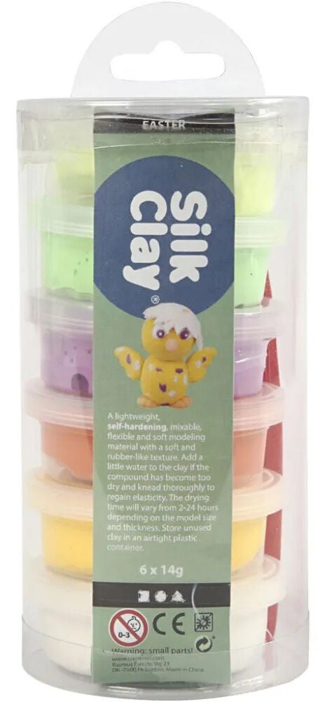 Let modellervoks fra Silk Clay med en jævn, smidig konsistens. Den har seks dåser med forskellige farver og er selvhærdende uden for dåsen. En perfekt gave til dit kreative barn! 6x14 gr. CE-mærket. Anbefalet alder: Fra 3 år.