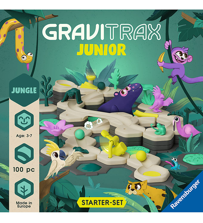 GraviTrax Junior Starter-Set Jungle er det perfekte introduktionssæt til den spændende verden af kuglebanelegetøj. Med 100 dele og et sjovt jungle-tema er dette sæt designet specielt til yngre børn.