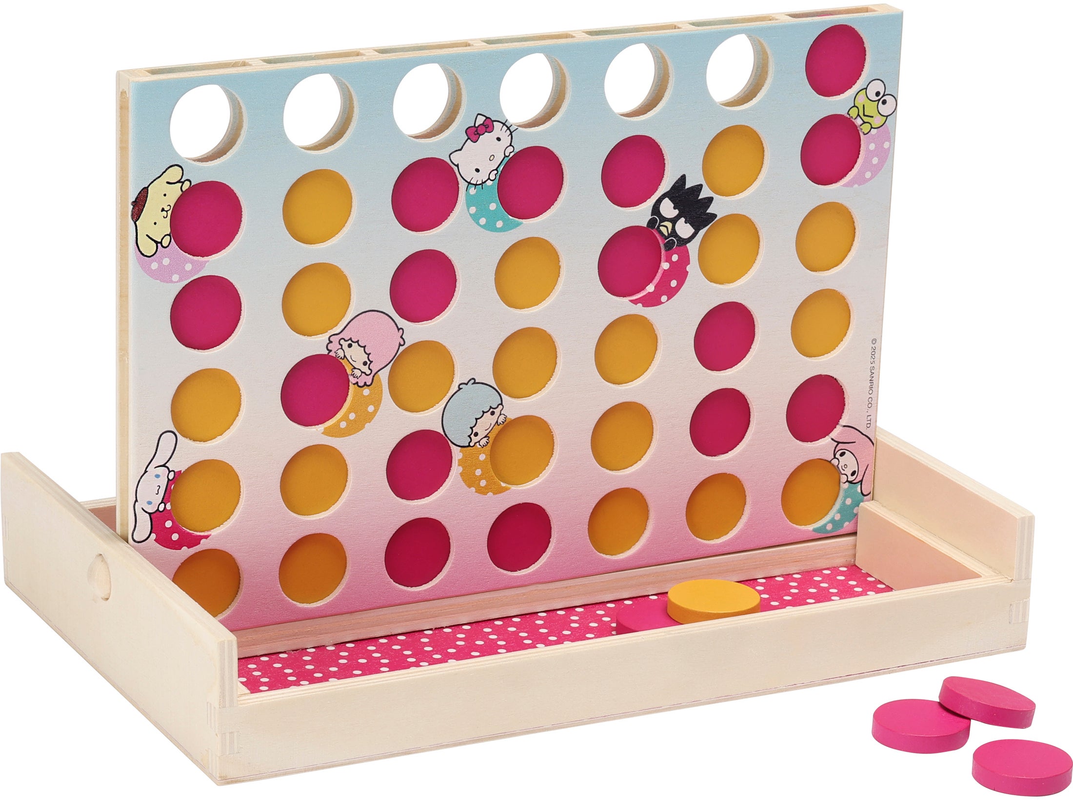4 på stribe fra Hello Kitty med et sødt Hello Kitty-motiv. Perfekt til en sjov spilleaften. Perfekt til en sjov spilleaften. - Indeholder: 1 spilleplade, 21 gule spillebrikker, 21 lyserøde spillebrikker. - Spillet handler om at få 4 på stribe med din farve, mens du prøver at forhindre din modstander i at gøre det samme. - Mål: H 15 x B 4 x L 24 cm. - CE-mærket. - Anbefalet alder: Fra 3 år. - Træ.