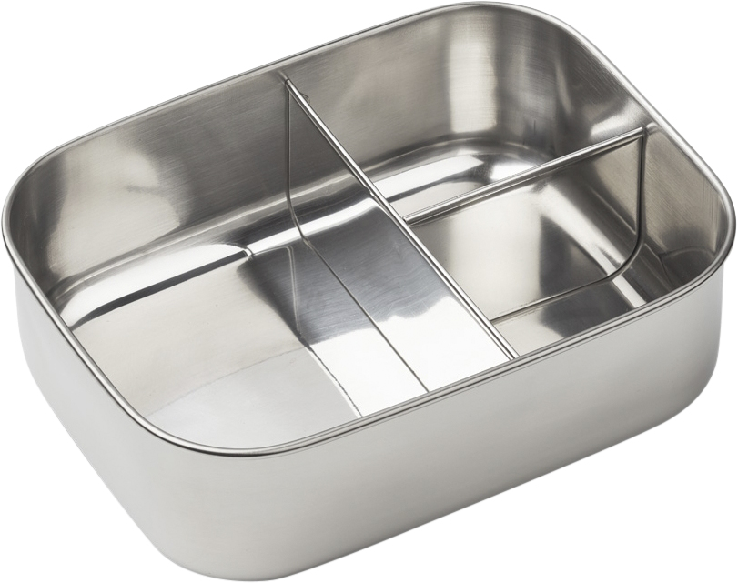 STAINLESS STEEL LUNCH BOX En let frokostæske i rustfrit stål med et sødt silikonelåg opdelt i tre praktiske rum. OM Materialebase- Låg af rustfrit stål- 100 % silikone Ultraholdbar absorberer ikke farve eller duft fra indholdet Fås med enten kat- eller bj