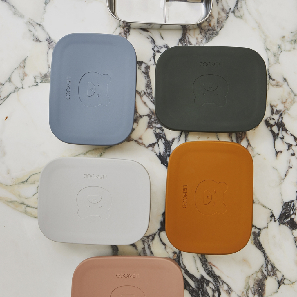 Let frokostkasse i rustfrit stål med et sødt silikonelåg. Rustfrit stål er yderst velegnet til opbevaring af fødevarer, da det ikke bevarer farve eller duft fra indholdet. Frokostkassen er opdelt i tre praktiske rum. Leveres med enten katte- eller bjørnef