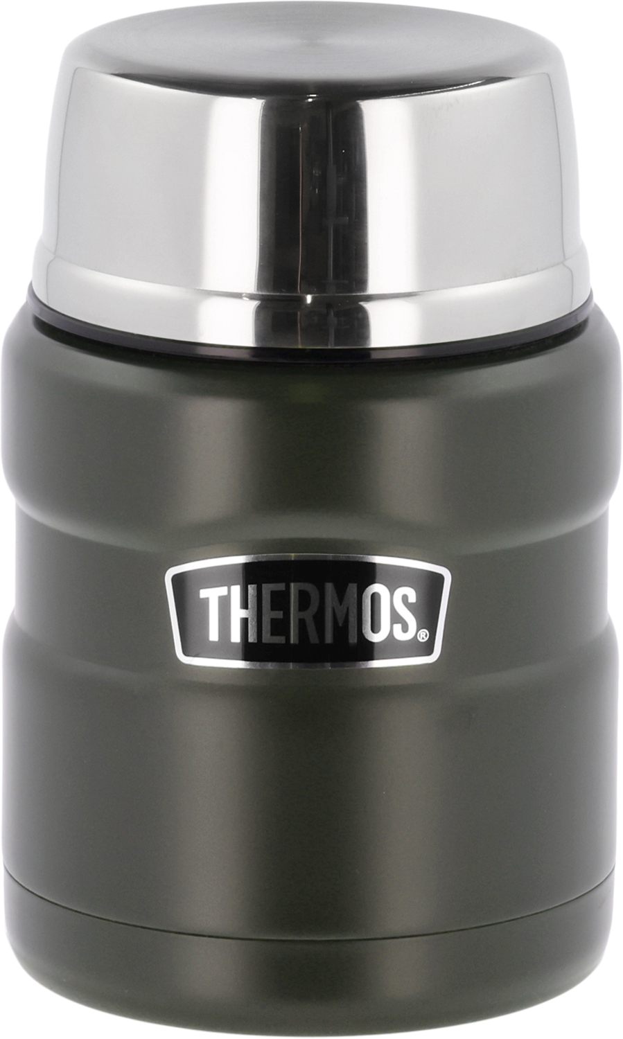 Thermos Stainless King 470 ml madtermoflaske i rustfrit stål med foldbar ske i låget. Låget kan bruges som spiseskål til fx suppe eller som kop til dine drikkevarer. Velegnet til både kolde og varme drikke, og holder indholdet varmt i op til 14 timer og k
