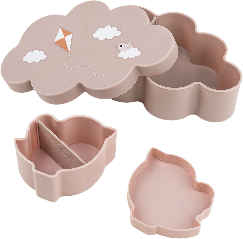 Pudderfarvet sæt der indeholder drikkedunk med sugerør, snackboks og madkasse Den gennemsigtige, pudderfarvede flaske har et praktisk sugerør, der kan foldes ind og forhindrer væske i at løbe ud Krokodilletakkerne på flaskens låg gør det let for barnet at