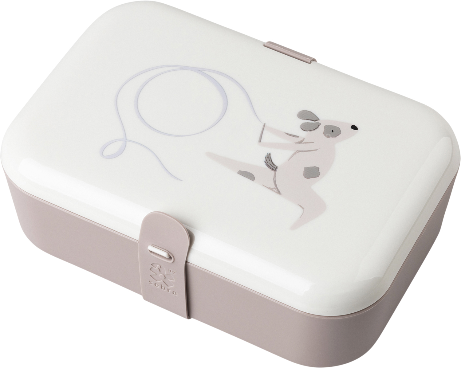 Låget på madkassen holdes på plads af en slidstærk silikonerem, der er nem for små hænder at tage af og sætte på igen. Madkassen kommer med en løs beholder med 2 rum, der fungerer som en rumdeler, hvilket gør det lettere at holde forskellige typer mad ads
