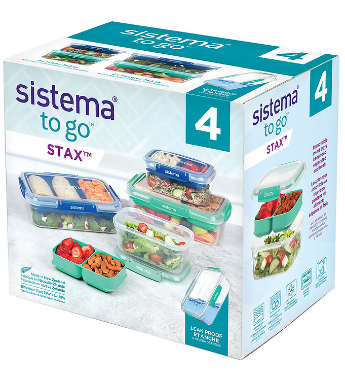 Sistema Madkasser - 4-pak - Stax To Go - Blå/Turkis