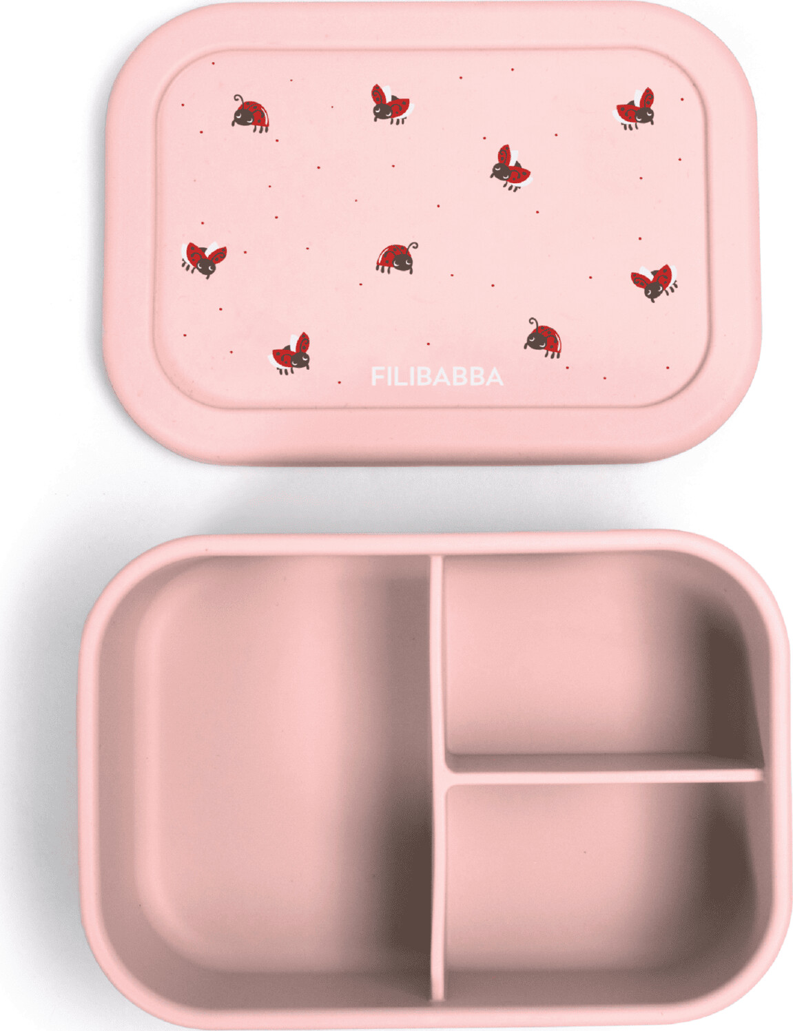 Filibabba - Madkasse I Silikone - 3 Rum - Lucky - Mariehøner