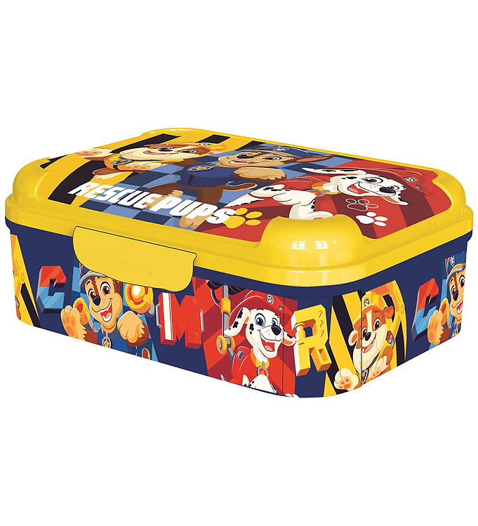 Giv dit barn en sjov og funktionel madkasse med Paw Patrol Madkassen - Asker Lunch Box i de livlige farver gul, blå og rød. Denne madkasse er ikke bare praktisk, men også en fryd for øjet med sine farverige Paw Patrol-motiver, der vil begejstre enhver lille fan af de modige hunde.