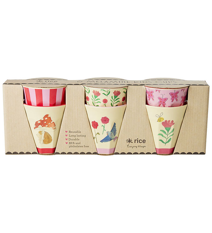 Rice Kopper - Melamin - 6 stk. - 160 ml - Pink/Happy Forest