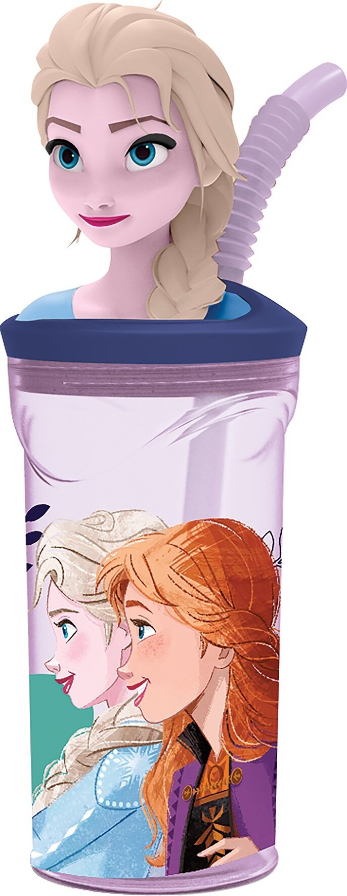 Originalt børneglas med integreret sugerør, med 3D-dekorationer formet som hovedet på nogle af de...