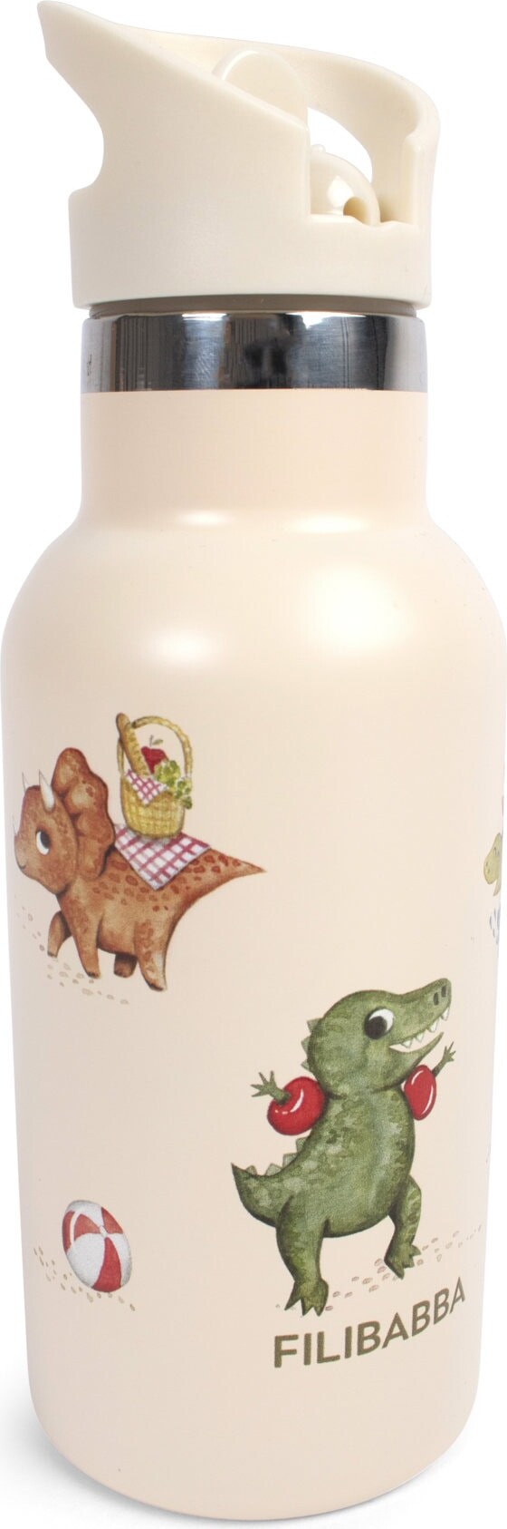 Filibabba - Drikkedunk Til Børn - Rustfrit Stål - Dino Strand - Beige