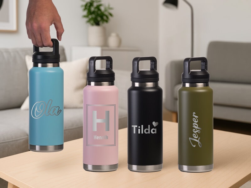 Stor tørst kræver stor termoflaske - og med personlig gravering bliver den desuden en helt unik følgesvend til alt fra pendling til arbejde og træninger til sjove udendørseventyr.