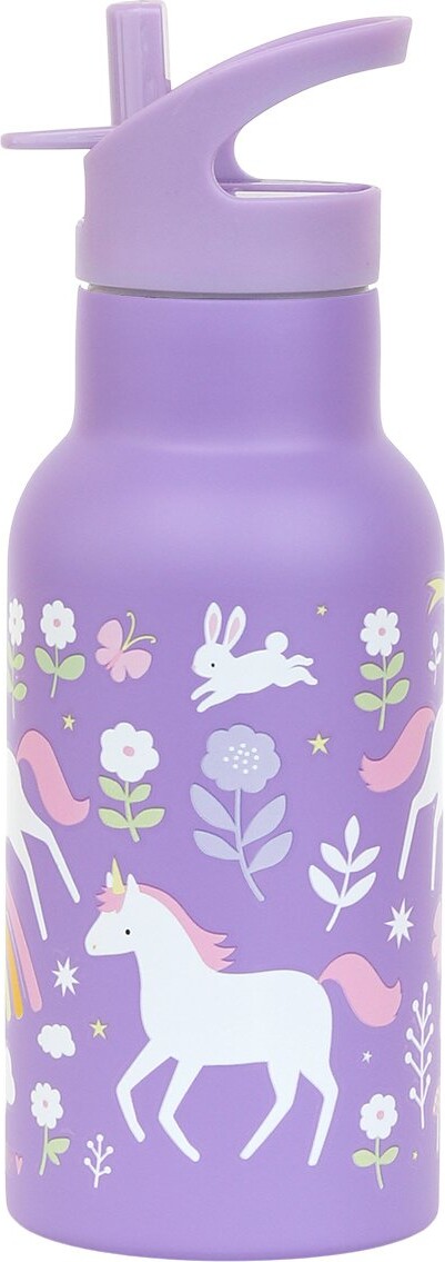 Den lilla drikkedunk i rustfrit stål med enhjørninger er ideel at tage med i skole eller på...