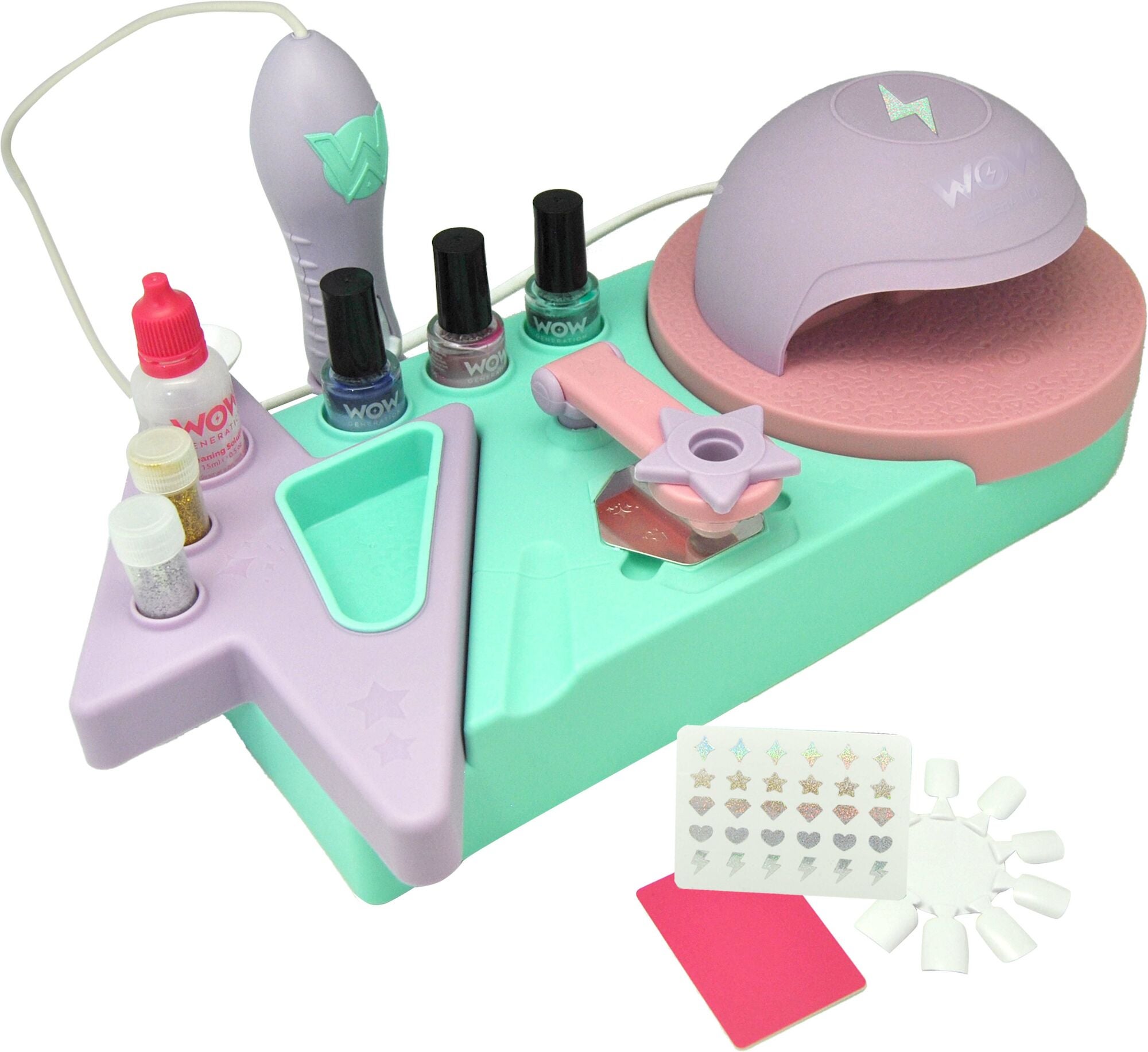 Neglesæt fra WOW Generation med alle materialer, du skal bruge til at lave din helt egen manicure. Det har en elektrisk dekorationspen og en tørrelampe. Neglesættet har kunstige negle, neglelakker og glitter, som kan kombineres på mange kreative måder. Som en neglesalon, bare derhjemme! . CE-mærket. Indeholder en elektrisk dekorationspen, en tørrelampe, kunstige negle, neglelak, klistermærker og glitter. Anbefalet alder: Fra 8 år. Batteri: 2 x AA (medfølger ikke).